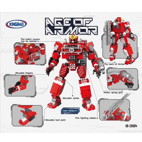 Der 2 in 1 Feuerwehrroboter von Xingbao kann als Feuerwehrauto oder als Kampf Roboter gebaut werden und besteht aus 779 Klemmbausteinen.
