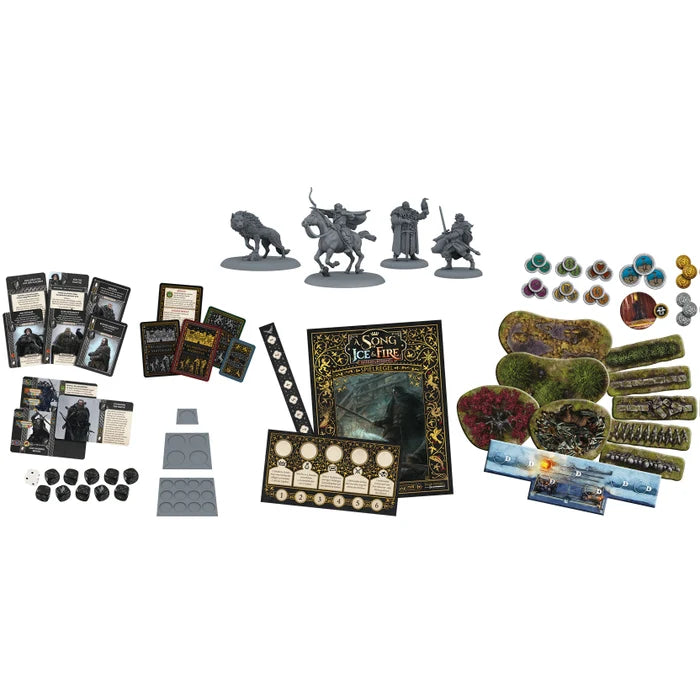 Das A Song of Ice and Fire - Nachtwache Starterset gibt euch alles um mit der Nachtwache in die Schlacht zu ziehen. Dieses Set enthält zwei Einheiten Sworn Brothers, eine Einheit Veterans of the Watch, eine Einheit Ranger Trackers, sowie weitere Charaktere und Einheitenausrüstungen wie z.B. Jon Snow, seinen Direwolf Ghost und Jeor Mormont. Außerdem sind Würfel, Marker und Terrain enthalten.
