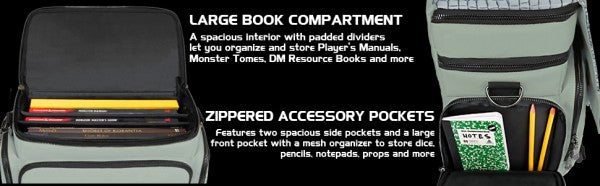 Speziell entwickelt, um Dungeons Masters oder Spielern eines Tabletop-RPGs zu helfen, alles mitzubringen, was sie für ihre nächste Sitzung benötigen. Das Design im Messenger-Stil verfügt über einen robusten Tragegriff und verstellbare Schultergurte. Das Äußere besteht aus einem robusten und strapazierfähigen Polyestergewebe, das mit einer Innenpolsterung verstärkt ist, um den Inhalt zu schützen und der Tasche strukturelle Unterstützung zu verleihen. Die Tasche verfügt über eine Vielzahl von Fächern zur Aufbewahrung und bietet Platz für Bücher von Dungeons and Dragons, Shadowrun, Mythras, The Burning Wheel, Mouse Guard, Pathfinder und vielen weiteren Publishern / Spielen. Das obere Fach verfügt über einen Miniatur-Figurenstauraum mit einem mitgelieferten Schaumstofforganisator, der 16 28-mm-Miniaturfiguren aufnehmen kann. VERBESSERN Sie Ihr Tischerlebnis mit der Reisetasche des Abenteurers.